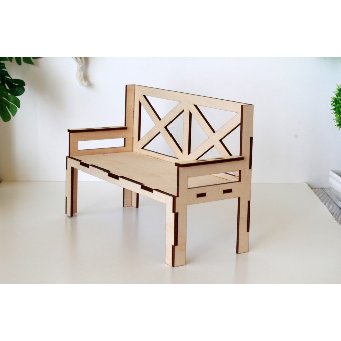 Miniature sofa 1:6 scale. Dollhouse furniture garden living room outdoor couch wooden BJD doll Scandinavian stylish modern room box diorama