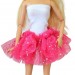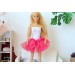The skirt was made tu tu design of tule fabric, sparkle pink color. The volume skirt looks really fashionable and pretty. The top was sewn of white knitwear with pink decor. This apparel suit for parties or casual wearing for your doll.
